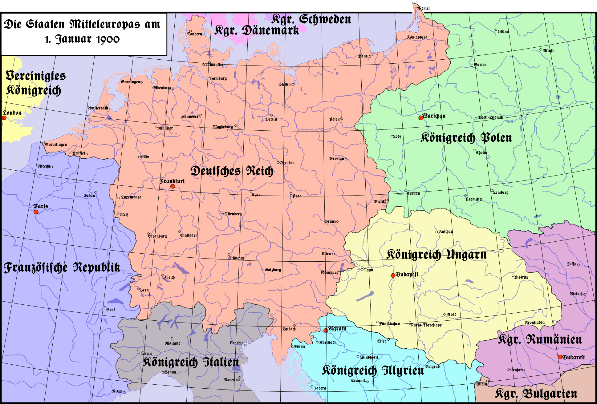 Map Germany 1900. These changes are colour coded to identify the colonial. See also categories: Maps of the history of Germany by historic territoryand Old maps of Germany by historic territory. Category:Old maps of the German Empire. Post-Reise-Karte von Deutschland mit spezielle Angabe der Eisenbahn- und Dampschiffahrt- Verbindungen. The map is color-coded to show the individual states that made up Germany at the time. Map Germany 1900.