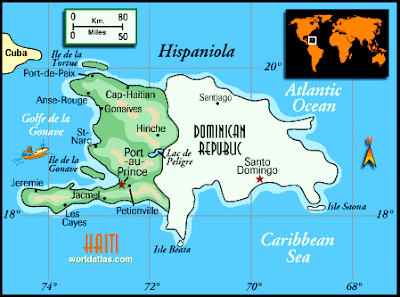 Haiti shares the island Hispaniola with the Dominican Republic.