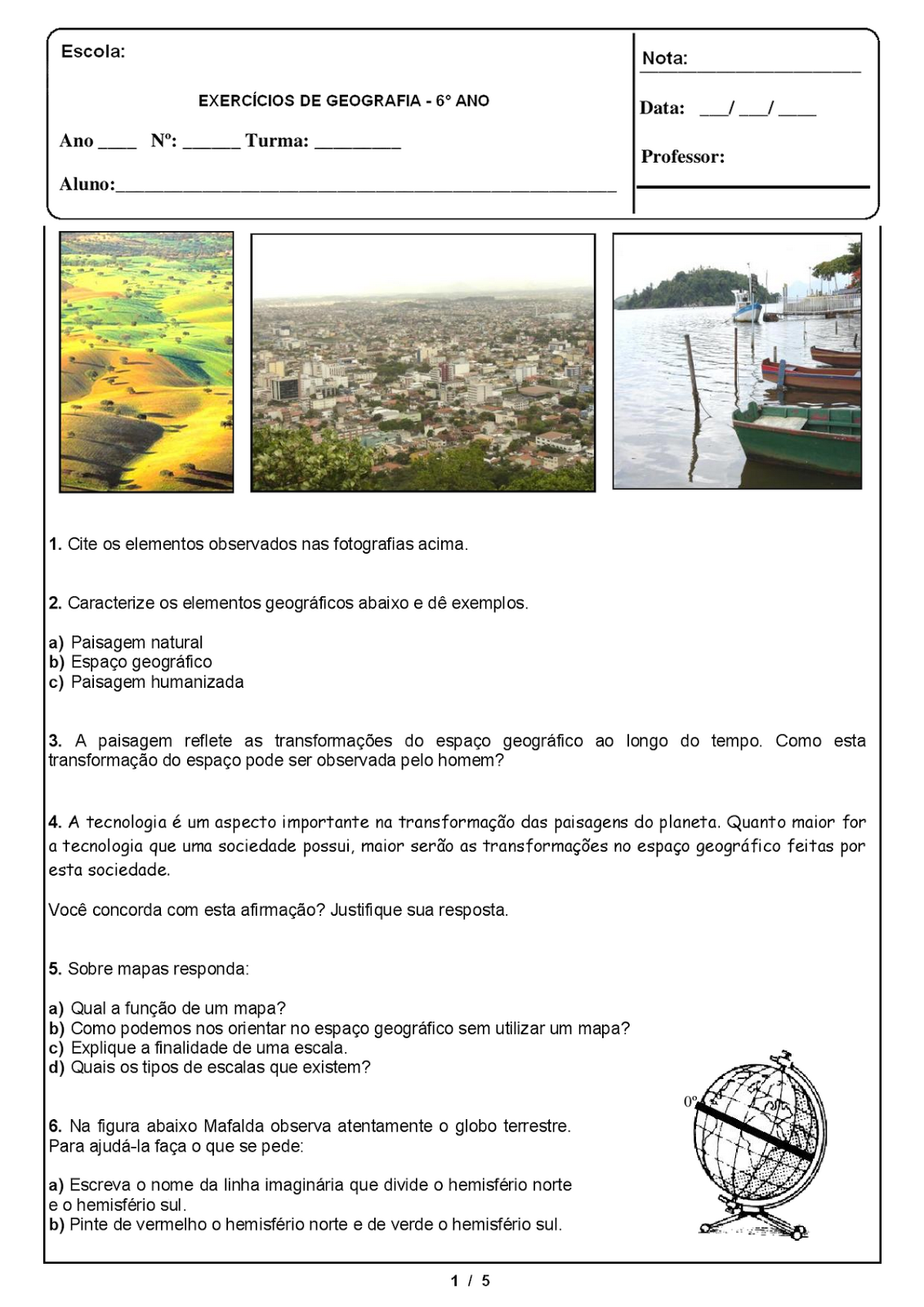 Mapas 6 Ano. Objeto(s) de aprendizagem: Identificar os elementos cartográficos do mapa e transformar a distância gráfica em distância real por meio da escala. Definição de cartografia, mapa, escala, grandeza de escala, projeções e exercícios. Através deles organizamos diferentes espaços e representamos coisas materiais ou imateriais. Students are asked to identify the location of cities on a map and determine the distances between them. Nesta. necessário uma cópia de cada mapa por grupo. Os mapas podem representar muitos aspectos de nosso dia a dia e de nossas vidas. Os mapas podem representar muitos aspectos de nosso dia a dia e de nossas vidas. Disponível em: GIARDINO, Cláudio, Geografia nos dias de hoje.