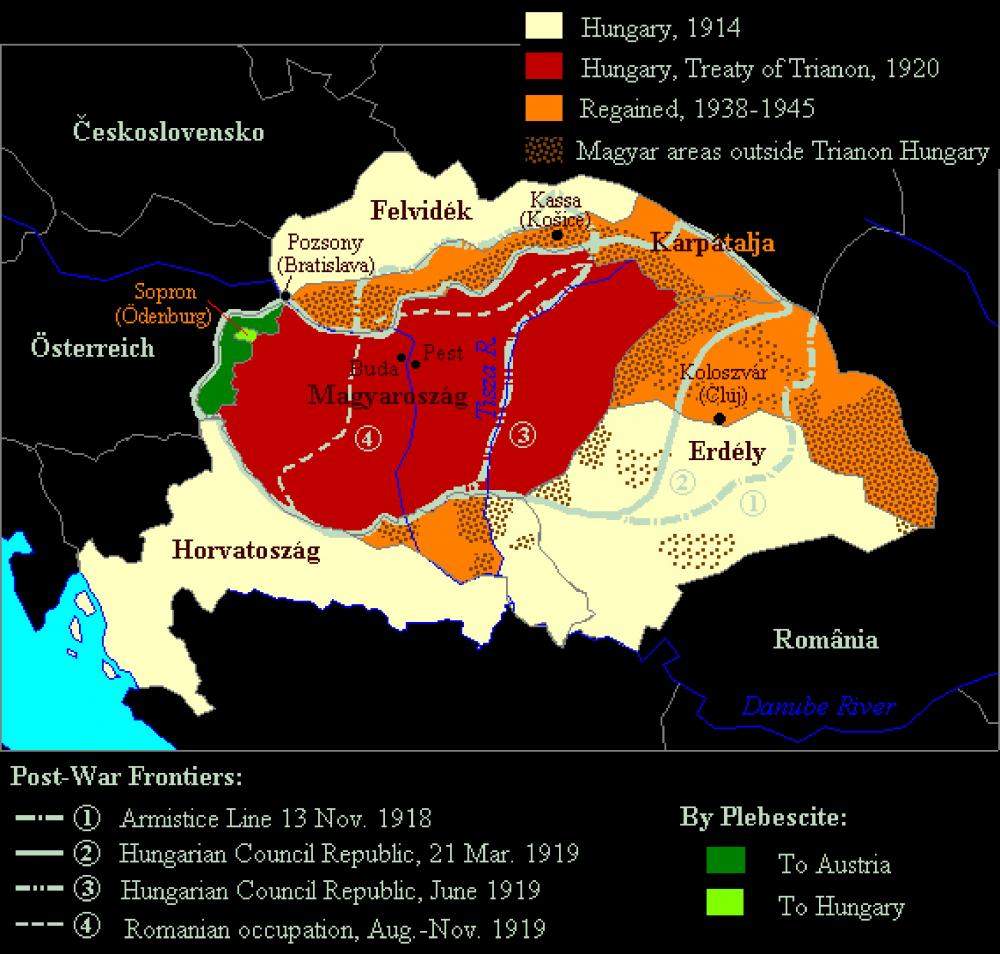 Hungary Map Before Trianon. A long-term effect of the Treaty of Trianon was Hungary's increasing readiness to align her foreign policy with other countries who wanted to disrupt the Versailles system.. Carte ethnographique des pays de la couronne hongroise, d'après les. Recommended resources and topics if you have limited time to teach about the Holocaust. This map shows the newly established boundaries for the former territories of Galicia, Czecho-Slovakia, Austria, Hungary, Rumania, Trentino (to Italy), and portions of the Serb-Croat-Slovene Kingdom, part of which went. The terrain ranges from flat to rolling plains. Hungary Map Before Trianon.
